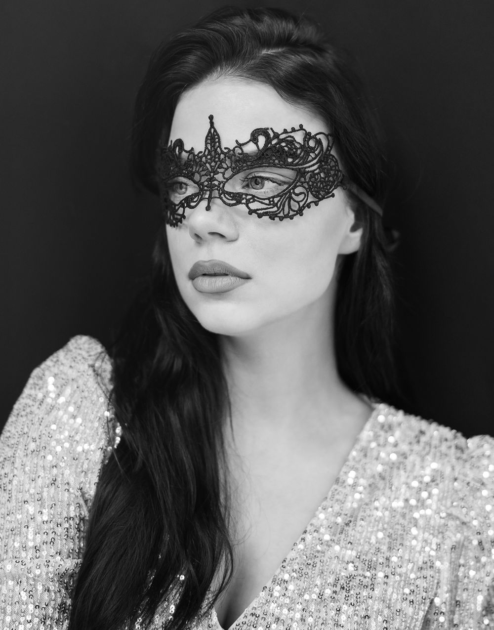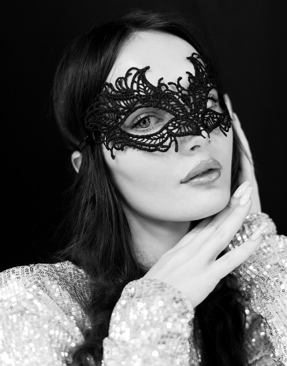 Mystique - Elegant svart virkad maskeradmask 20x11 cm
