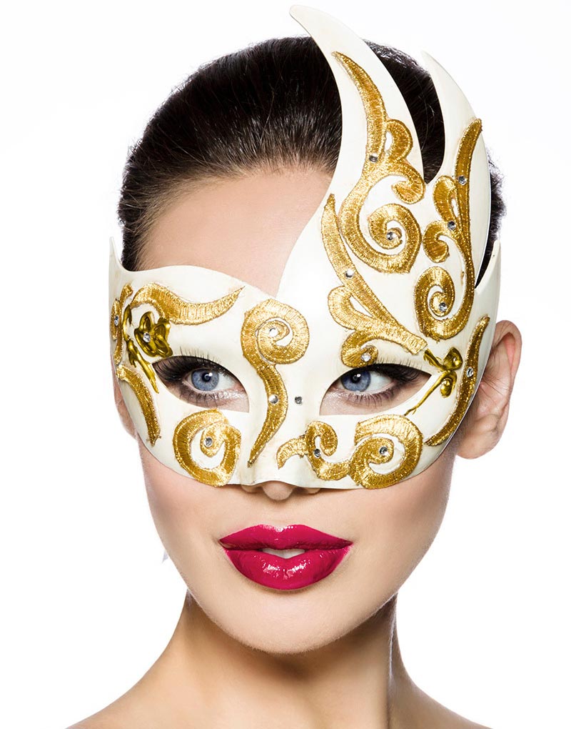 Venetian Lady - Krämvit/Beige Lyxig Maskeradmask