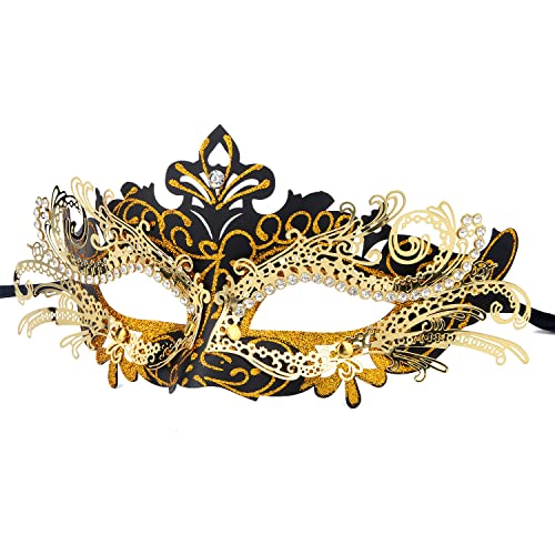 MYSEUNI Maskeradmask för par – guldvenetiansk metallmask & romersk grekisk venetiansk mask – cosplay halloweenpartymask