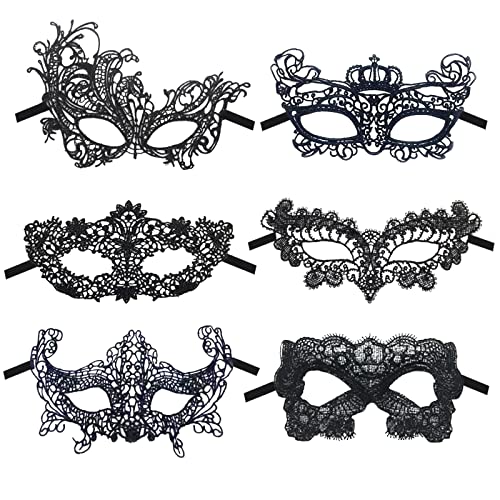 GWAWG Maskeradmask för kvinnor, venetianskt öga, sexig spets, för halloween, karneval, fest, kostymbal, för män, kvinnor och par, 6-pack