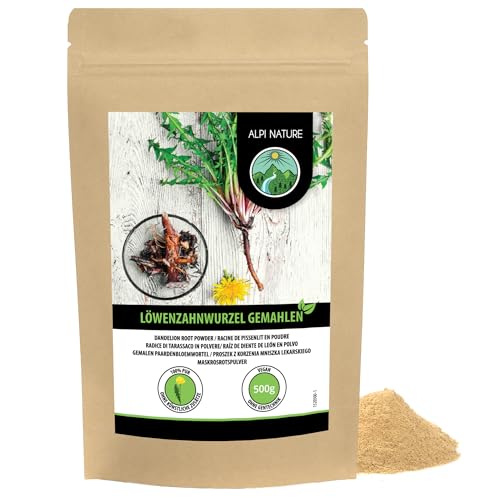 Alpi Nature EKOLOGISK maskrosrotmald (500g), ekologisk maskrosrottorkad, maskrosrot från vild samling, maskroste ekologiskt, maskrosrotste 100 procent naturligt