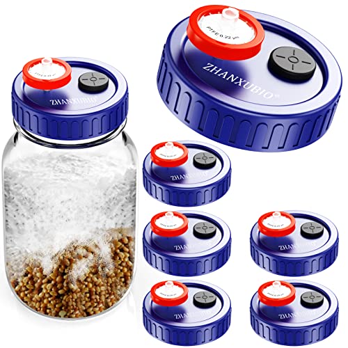ZHANXUBIO Lock för flytande odling av svampburk Rejular Mouth Matkvalitet Plastkorn Spawn Växande Mason Jar Lock med PTFE-membran och självläkande injektionsportar för svamp Off (70mm, 6st)