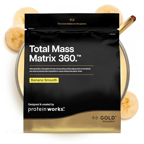 THE PROTEIN WORKS Total Mass Matrix Extreme Protein Powder, Mass Gainer, Kaloririkt viktökningspulver, Med glutamin, kreatin och vitaminer, Banana Smooth, 2.1