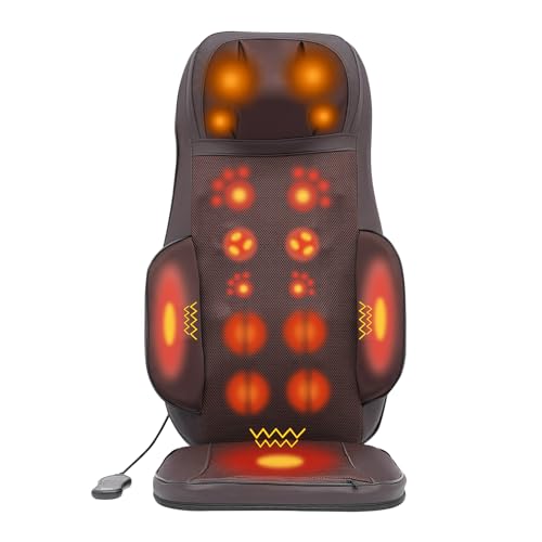 YyanLAK Massage-sittdyna, massagedyna 42 x 33 x 75 cm, kompressionsmassagesits, ryggmassageapparat med värme, massage av nacke, axlar, rygg och lår (kaffefärg)