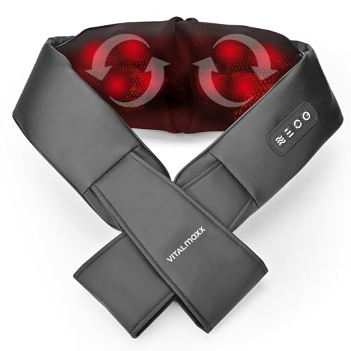 VITALmaxx Shiatsu nackmassage | Masserare för axlar, nacke, rygg, ben | massage med värmefunktion, knådningsmassage och tryckmassage, 8 roterande massagebollar, svart