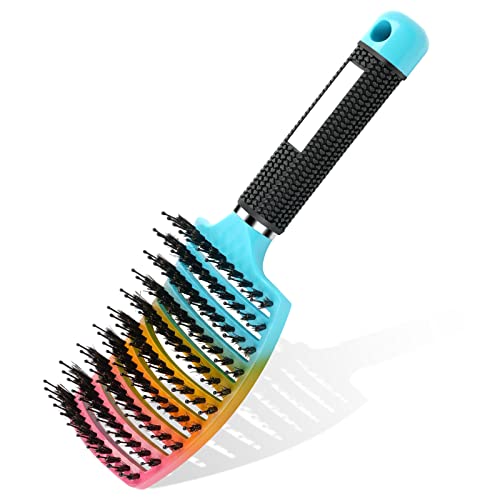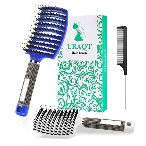 URAQT hårborste, naturlig vildsvinsborst paddelhårborste för kvinnor och män, skonsam massage hårkam, professionell hårborste för långt tjockt lockigt hår, minskar håravbrott och friss (Blå)