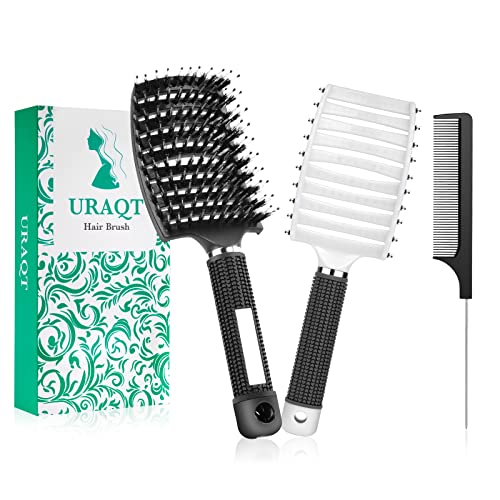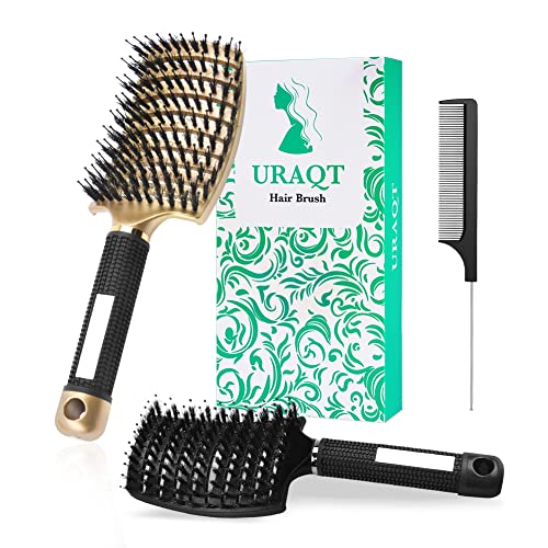 URAQT Hårborste, Naturlig Vildsvinsborst Paddelhårborste Presentlåda Kostym För Kvinnor Och Män, Skonsam Massage Hårkam, Professionell Hårborste För Långt Tjockt Lockigt Hår, Minskar Håravbrott Och Friss (I)