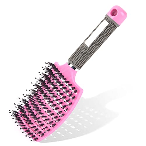 URAQT hårborste, naturlig vildsvinsborst paddelhårborste för kvinnor och män, skonsam massage hårkam, professionell hårborste för långt tjockt lockigt hår, minskar håravbrott och friss (Rosa)