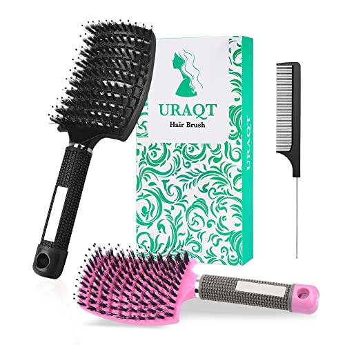 URAQT Hårborste, Naturlig Vildsvinsborst Paddelhårborste Presentlåda Kostym För Kvinnor Och Män, Skonsam Massage Hårkam, Professionell Hårborste För Långt Tjockt Lockigt Hår, Minskar Håravbrott Och Friss
