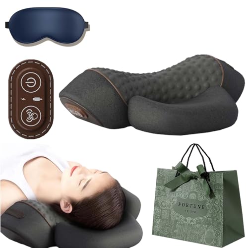 Gienslru Callixe Thera kudde massage, nackkudde cervikal minnesskum kuddar, nackmassagekudde för nacksmärtlindring, ergonomisk ortopedisk sängkudde (svart, massage + uppvärmning + lyft)