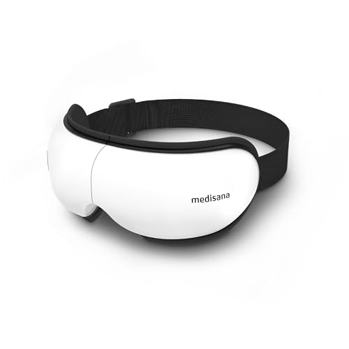 medisana EM 100 ögonmassageapparat, ögonmask med massage, värme och musik, ansiktsmassageapparat för huvudvärk, ögontrötthet, svullnad eller migrän, hopfällbar massageapparat