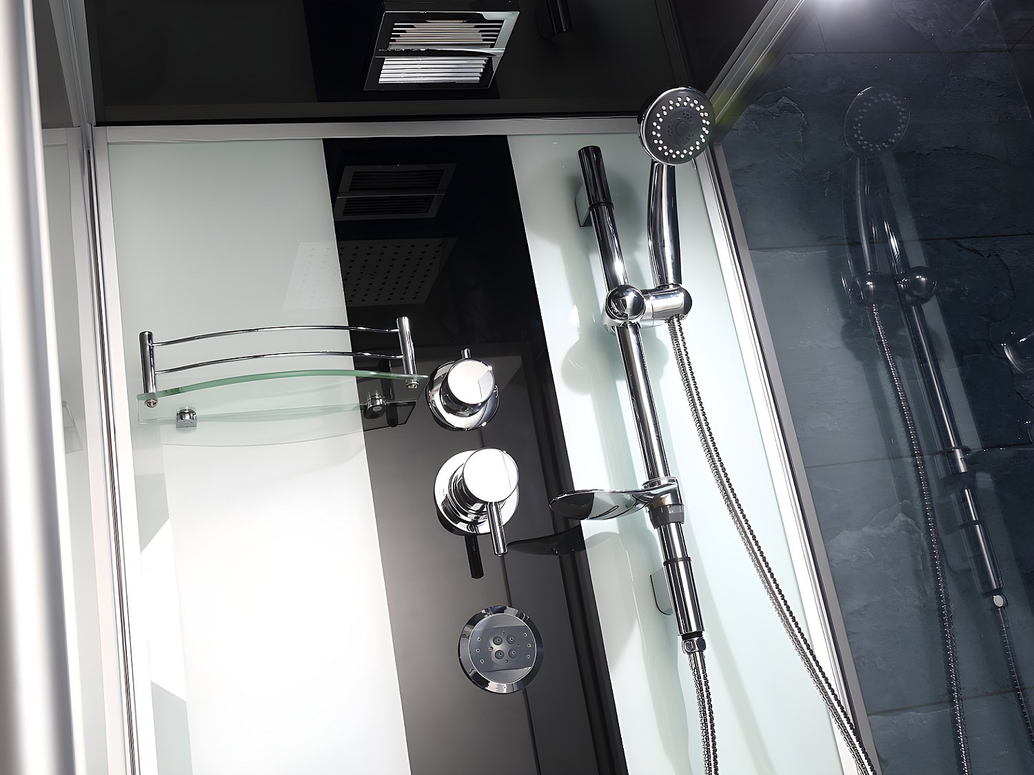 Massagebadkar med dusch - Mörkgrå profiler - L150 x B75 x H215 cm - 30 mikrojets och 6 stora jets - DARIA