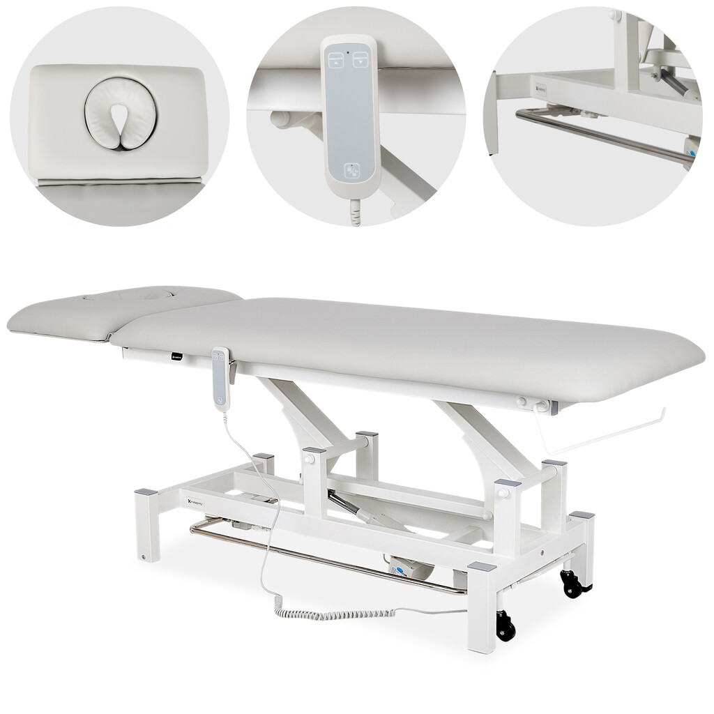 Fortis 2 ERGO massagebänk, elektrisk fotkontroll och hjul - ljusgrå