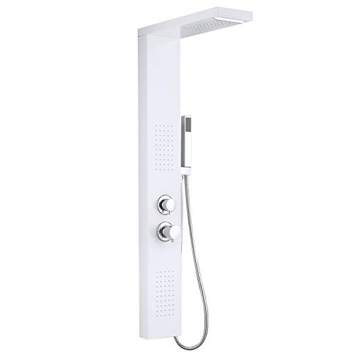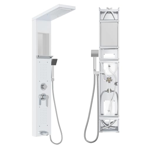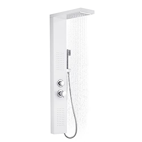 LARS360 Duschpanel duscharmatur av rostfritt stål, 4-i-1 duschsystem med handdusch, regndusch, massagedusch och vattenfallsdusch, duschset för badrum dusch, vit duschpanel