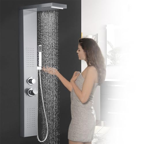 Aufun Duschpanel rostfritt stål duschsystem med regndusch, massagedusch, duschpelare duschset med handdusch för badrum duschdusch, silver