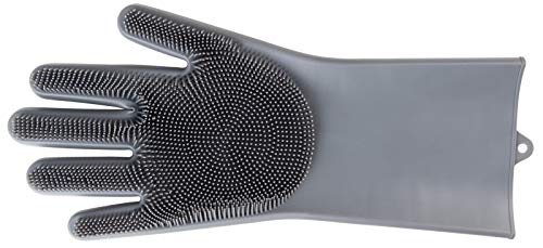 Pfiff 102757 rengöringshandske, silikon noppor tvätthandske massagehandske häst, grå