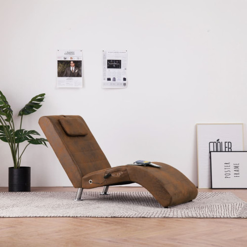 vidaXL Massageschäslong med kudde brun konstmocka 281349