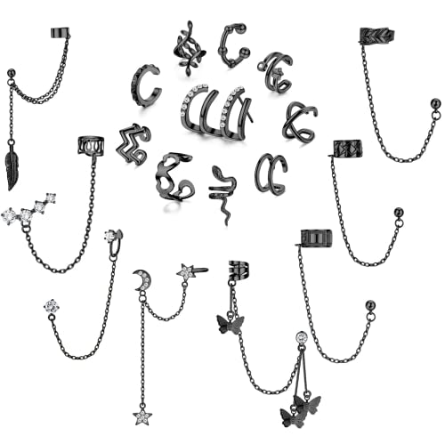 Diamday 18 st öronmuff örhängen kedja örhängen för kvinnor justerbar helix brosk clip on wrap örhängen manschetter öronclips öronclips öronclips set öronklämma falska örhängen, Mässing