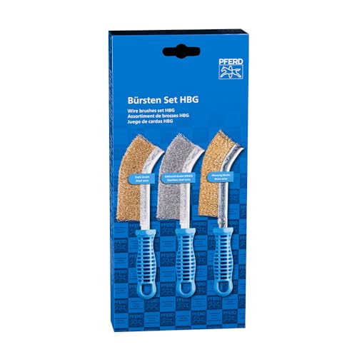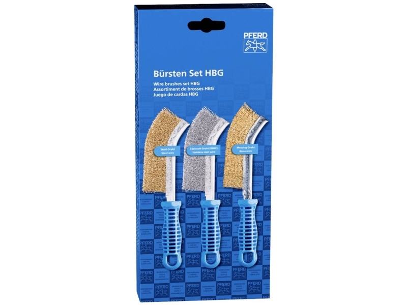 PFERD Handborstset, HBG 3 delar | 1 x handborste med ståltråd (mässing), rostfri stål- och mässingstråd | trådtrim: 0,30 mm | 43900005 – för rengöring på svåråtkomliga platser.