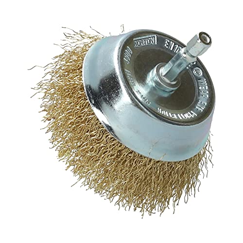 kwb skivborste, fin, mässingstråd, Ø 75 mm för metall och sten, trådborste för borrmaskin inkl. E6.3 sexkantsskaft, för avrostning, avmattning, rostning och rengöring