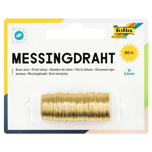 folia 79465 – mässingstråd, guld, 1 spole 0,3 mm x 80 m – perfekt för hantverk, arrangemang och smycken