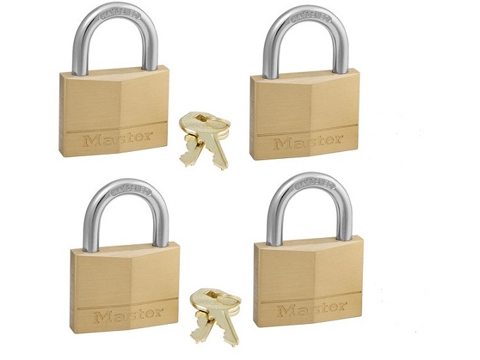 Master Lock 140Q Solida hänglås, 4-pack, nyckelliknande, mässing, silver