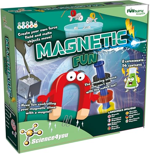 Science4you Magnetiska uppfinningar - Vetenskapspaket med magneter, magnetiska leksaker, kuber och mastix, 6 experiment och 14 innehåll, slemspel för barn, presenter till barn 8 9 10 11+