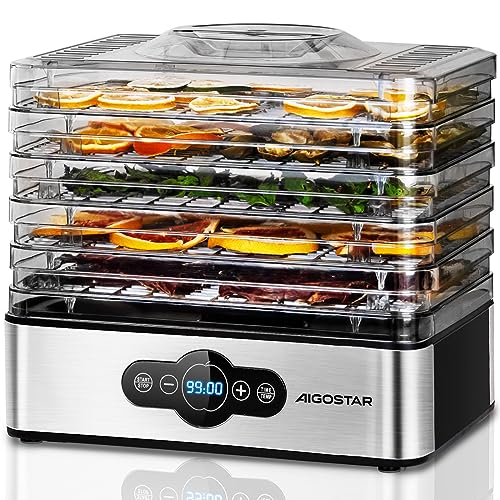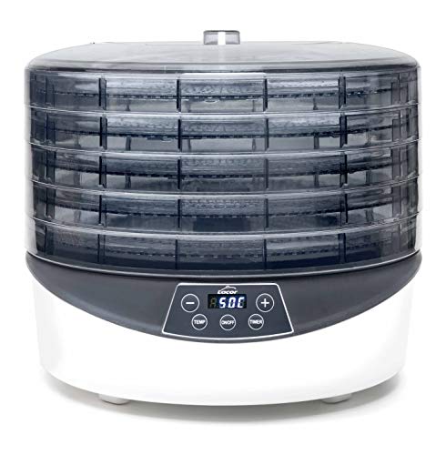 Aigostar Krispig - BPA Fri Mat Dehydrator, 240W, 5 brickor. Dehydrerar frukt, kött, grönsaker etc. Digitala kontroller och manuell justering av tid och temperatur.
