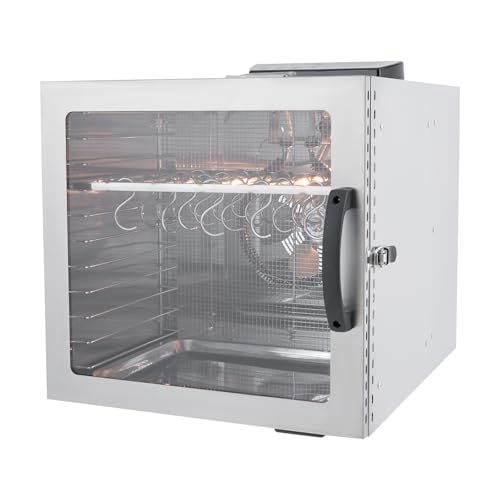 Torkfläkt i rostfritt stål, 1 000 W dörrenhet, uttorkning av mat med temperaturregulator, dehydrator mat torkning 30–90 °C 24 timmar timer 20 krokar 10 antal våningar, för kött, frukt, grönsaker
