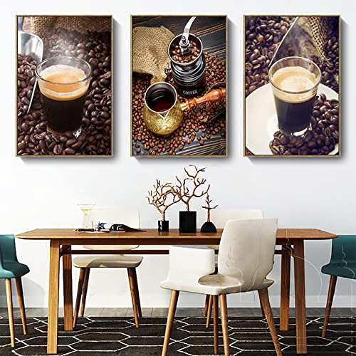 XUSANSHI Konsttryck bilder mat efterrätt kaffe bilder tryckta på duk väggkonst för heminredning väggdekor 3 paneler ingen ram 40 x 60 cm