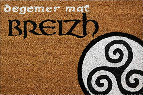 ID-matta 406015 beige koir & PVC-dörrmatta med bretondesign – 60 x 40 x 1,5 cm [Bretonskrift på designen]