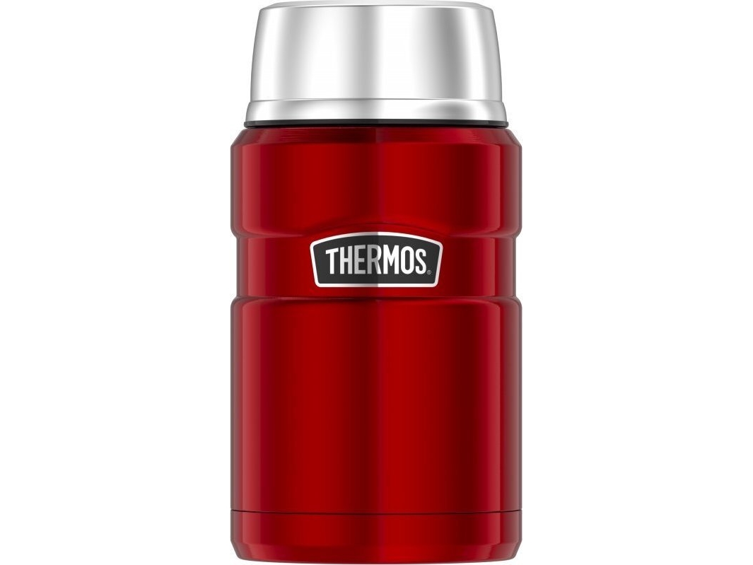 Thermos ICON Food Jar 0,71 l, röd/bärmatta, matbehållare för mat 710 ml, dubbelväggigt 18/8 rostfritt stål, håller dig varm och kall, med vikbar sked, halkfritt golv, absolut tät