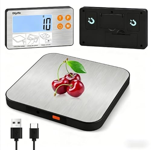Diyife köksvåg digital delad, rostfritt stål 1 g/15 kg hushållsvåg, USB-laddning och batteridrift, bakgrundsbelyst LCD-display våg kök, räkningsfunktion, för bakning matlagning mat