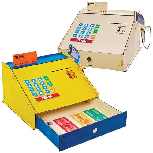 Baker Ross FN087 Kassaapparat i trä - 1-pack, leksaksbutik för barn, mataffär för barn