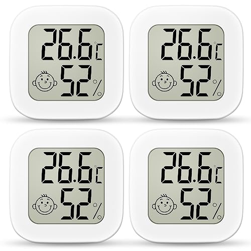 Ainiv 4 st digital hygrometertermometer för inomhusbruk, minirumstermometer med LCD-skärm och ansiktsikoner, mätare med indikator för temperatur och fuktighet för sovrum, babyrum, lager, källare, bil