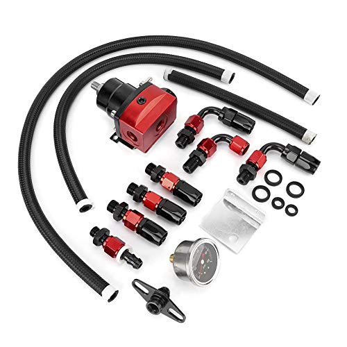 Terisass Bränsletrycksregulator aluminiumlegering bil fordon justerbar FPR bränsletrycksregulator med mätare och monteringsadapter kit universell (röd) + bränsletrycksregulator med retur + bränsletryck re