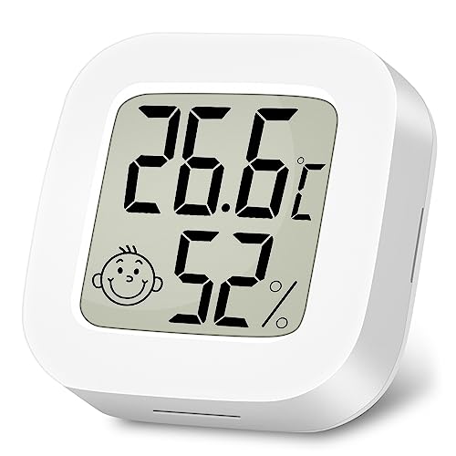 Ainiv Digital hygrometertermometer för inomhusbruk, minirumstermometer med LCD-skärm och ansiktsikoner, mätare med indikator för temperatur och fuktighet för sovrum, babyrum, lager, källare, bil