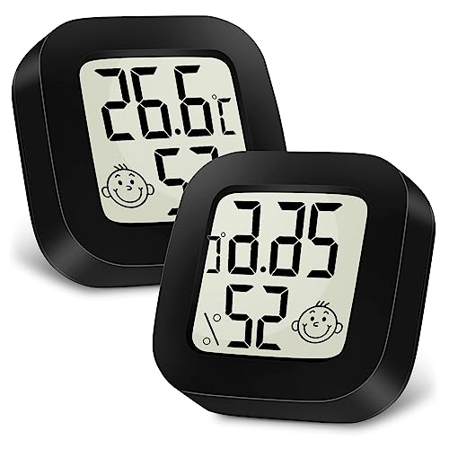 Ainiv 2 st digital hygrometertermometer för inomhusbruk, minirumstermometer med LCD-skärm och ansiktsikoner, mätare med indikator för temperatur och fuktighet för sovrum, babyrum, lager, källare, bil