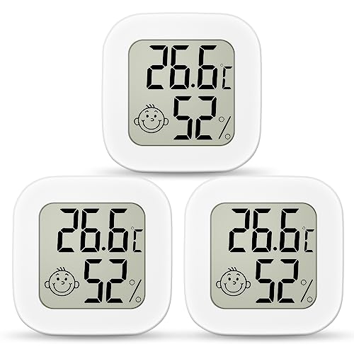 Ainiv 3 st digital hygrometertermometer för inomhusbruk, minirumstermometer med LCD-skärm och ansiktsikoner, mätare med indikator för temperatur och fuktighet för sovrum, babyrum, lager, källare, bil