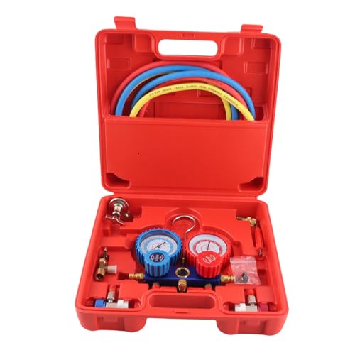 A/Kylmedel grenrör mätare set luftkonditioneringsverktyg, kylmedel luftkonditioneringsset med slang och krok för luftkonditionering testning bil luftkonditionering diagnostisk testare R134a