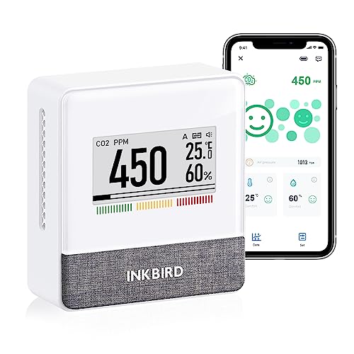 Inkbird IAM-T1 Bluetooth Luftkvalitetsmonitor, CO2 Mätare med Elektronisk Bläckdisplay, Temperatur, Luftfuktighet och Lufttryck, App Kontrol för Hem, Kontor, Skola, Café, Fritidsfordon