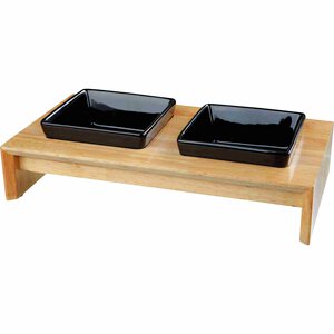 Trixie Matbar, keramik/bambu, 2 × 0,3l/ø 12 cm/30 × 6 × 15 cm, vit/ecru