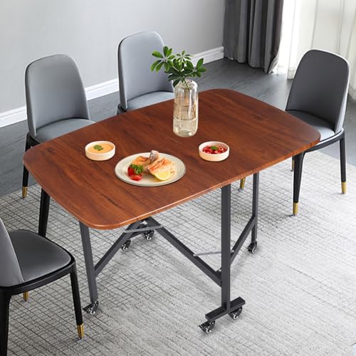 Fällbart bord, kök, matbord, utrymmesbesparande, multifunktionellt köksbord, fällbart matbord, litet fällbord med hjul och stålben för små rum/kök/matsal/vardagsrum, 120 x 80 x 75 cm (brun)