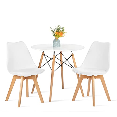 Fullt set med runda matbord med 2 vita stolar, matsalsgrupp för matsal kök vardagsrum