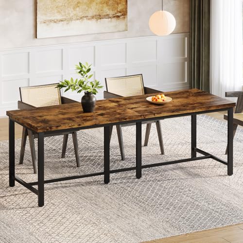 Tribesigns 200 cm långt matbord för 6–8 personer, stort industriellt rektangulärt köksbord av trä, rustikt matbord med robusta metallben (rustik brun)