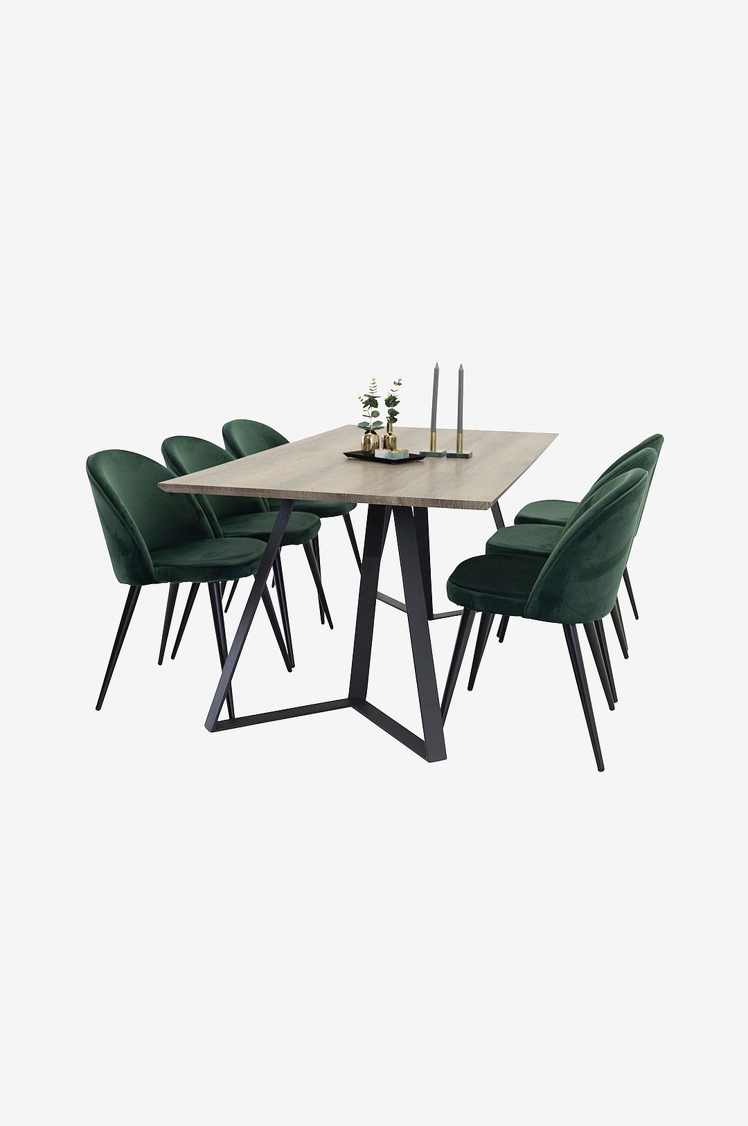 Venture Home - Matgrupp med Maggie Matbord och 6 st Velvet Stol - Grön - Matgrupp 6 personer - Från Homeroom