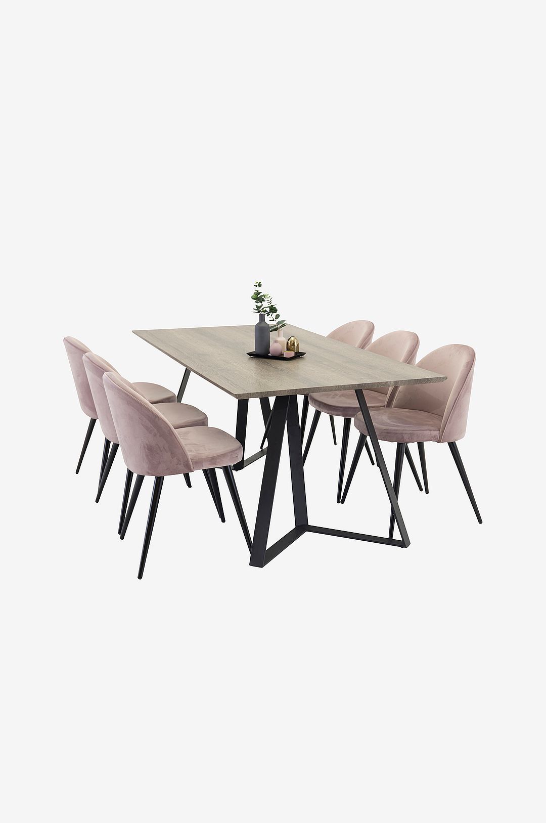 Venture Home - Maggie Matbord och 6 st Velvet stol - Rosa - Matgrupp 6 personer - Från Homeroom