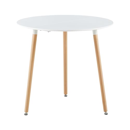 H.J o Matbord rund, köksbord trä, 80 x 80 x 74 cm, ben av naturbok, skandinaviskt bord, vitt, 3 ben
