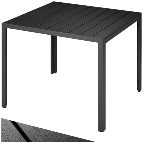 tectake® Trädgårdsbord Metall, Höjdjusterbara Fötter, 90x90x74,5 cm, Sidobord, Vädertåligt, Lättskött, Matbord för Balkong, Terrass - Svart