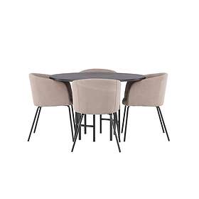 Venture Home Copenhagen Matgrupp 140 cm Rund med 4 Velvet stolar Svart Matgrupper Grå,Svart